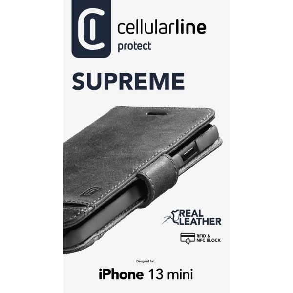 *Premiové kožené puzdro typu kniha Cellularline Supreme pre Apple iPhone 13 Mini, čierne