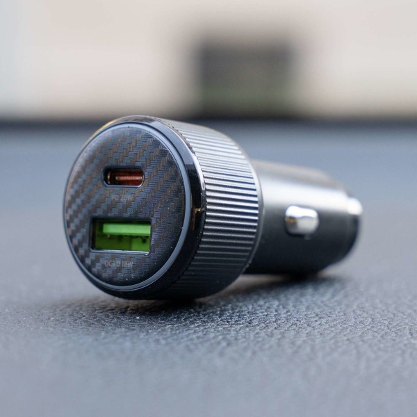 Praktická nabíjačka do auta s podporou rýchleho nabíjania PD 3.0 a QC 3.0, vybavená portami USB-C a USB-A. Súčasťou balenia je 1m kábel USB-C/USB-C (3A, 60 W, mäkký silikón) na okamžité použitie. Modré LED osvetlenie v obvode nabíjačky uľahčuje pripojenie kábla aj počas jazdy v noci.