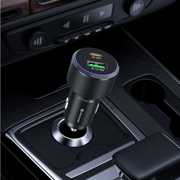 Krytoland pouzdra a kryty na mobil > Príslušenstvo pre automobily > Nabíjačky do auta > ADAPTÉR SWISSTEN CL USB-C PD + USB-A, 38W ČIERNY + KÁBEL USB-C / USB-C, 1 M