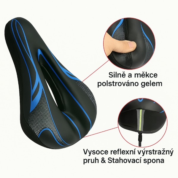 Anatomické gélové sedlo na bicykel s reflexným pruhom a vetraním