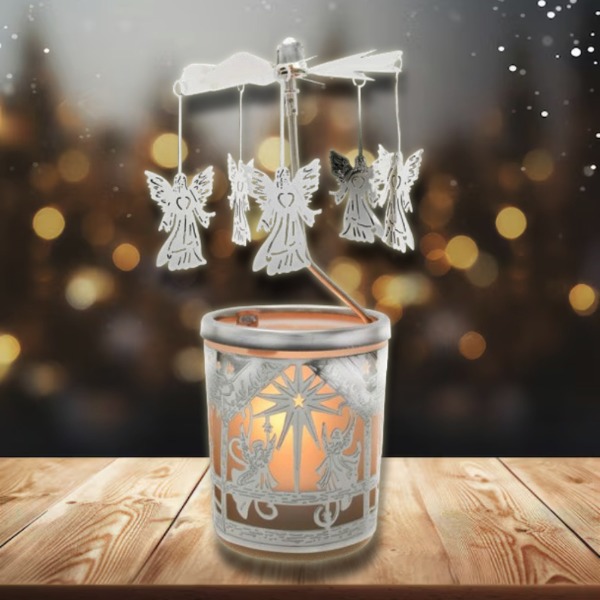 Kvalitne spracovaná dekorácia nemeckej výroby, ktorá sa hodí do každej domácnosti. Keď zapálite čajovú sviečku, teplota spôsobí, že sa vrchnák roztočí, čím vytvorí krásnu a uvoľňujúcu atmosféru.