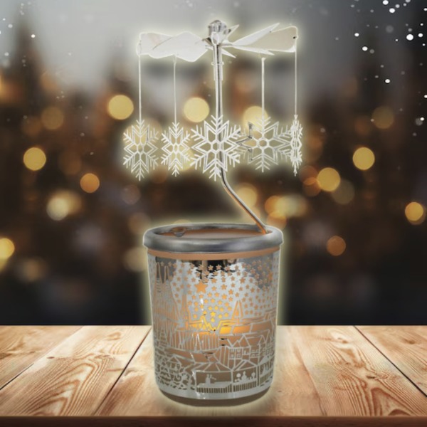 Kvalitne spracovaná dekorácia nemeckej výroby, ktorá sa hodí do každej domácnosti. Keď zapálite čajovú sviečku, teplota spôsobí, že sa vrchnák roztočí, čím vytvorí krásnu a uvoľňujúcu atmosféru.