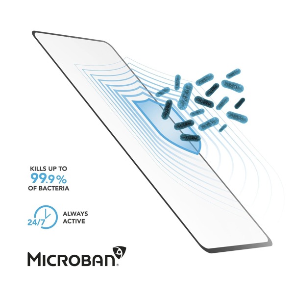 Extrémne tvrdé a odolné sklo Cellularline Antibiom dokonale chráni displej pred poškodením a zároveň vďaka špeciálnemu materiálu spoľahlivo ničí nebezpečné baktérie, ktoré sa prilepia na jeho povrch. Displejov mobilných telefónov sa počas dňa dotýkame mnohokrát a na ich povrchu zostáva obrovské množstvo škodlivých mikroorganizmov, ktoré môžu ohroziť naše zdravie. Materiál skla Antimicrob v sebe ukrýva špeciálnu certifikovanú technológiu Microban®, ktorá spoľahlivo ničí až 99,9 % baktérií a zabraňuje ich množeniu. Na rozdiel od čistiaceho spreja, ktorý sa musí opakovane nanášať, je antimikrobiálna technológia Microban® integrovaná priamo do materiálu krytu a nedá sa z neho zotrieť ani zmyť. Antimikrobiálne vlastnosti skla vás chránia 24 hodín denne a sklo túto schopnosť nestráca ani po zotretí alebo vyčistení displeja. Sklo chráni celý displej a v prípade nárazu absorbuje všetku energiu, čím ho chráni pred prasknutím a prípadným poškriabaním. Po inštalácii nie sú medzi displejom a sklom žiadne medzery, citlivosť dotykovej obrazovky zostáva úplne neovplyvnená a úroveň jasu displeja sa neznižuje. Balenie obsahuje všetko potrebné na jednoduchú inštaláciu vrátane špeciálneho aplikátora na presné prilepenie skla k displeju.