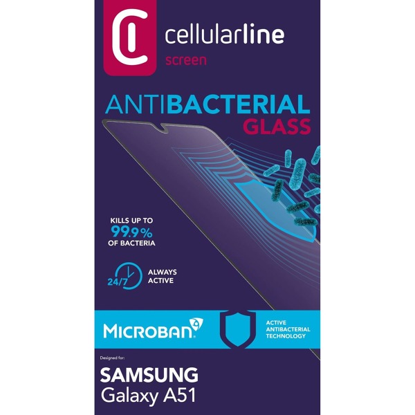 Antimikrobiálne ochranné tvrdené sklo Cellularline Antibiom pre Samsung Galaxy A51, čierne