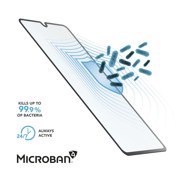 Extrémne tvrdé a odolné sklo Cellularline Antibiom dokonale chráni displej pred poškodením a zároveň vďaka špeciálnemu materiálu spoľahlivo ničí nebezpečné baktérie, ktoré sa prilepia na jeho povrch. Displejov mobilných telefónov sa počas dňa dotýkame mnohokrát a na ich povrchu zostáva obrovské množstvo škodlivých mikroorganizmov, ktoré môžu ohroziť naše zdravie. Materiál skla Antimicrob v sebe ukrýva špeciálnu certifikovanú technológiu Microban®, ktorá spoľahlivo ničí až 99,9 % baktérií a zabraňuje ich množeniu. Na rozdiel od čistiaceho spreja, ktorý sa musí opakovane nanášať, je antimikrobiálna technológia Microban® integrovaná priamo do materiálu krytu a nedá sa z neho zotrieť ani zmyť. Antimikrobiálne vlastnosti skla vás chránia 24 hodín denne a sklo túto schopnosť nestráca ani po zotretí alebo vyčistení displeja. Sklo chráni celý displej a v prípade nárazu absorbuje všetku energiu, čím ho chráni pred prasknutím a prípadným poškriabaním. Po inštalácii nie sú medzi displejom a sklom žiadne medzery, citlivosť dotykového displeja zostáva úplne neovplyvnená a úroveň jasu displeja sa neznižuje. Balenie obsahuje všetko potrebné na jednoduchú inštaláciu vrátane špeciálneho aplikátora na presné prilepenie skla k displeju.
