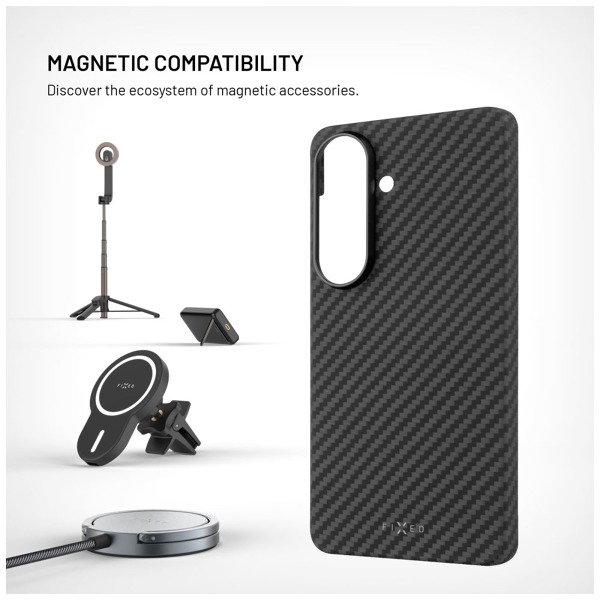 Aramidový zadný kryt FIXED MagVelar s podporou MagSafe pre Samsung Galaxy S26+, čierny