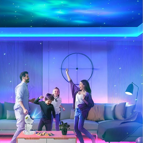 - Projektor hviezd a hmlovín: premieta nádherné farebné hmloviny a hviezdy na steny alebo strop, ideálne na relaxáciu alebo ako nočné osvetlenie.