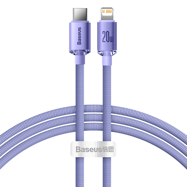 Baseus Crystal Shine kábel USB-C na Lightning, 20W, PD, 1,2 m (fialový)