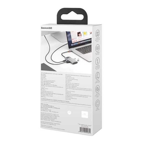 Baseus Metal Gleam Series 4v1 Hub, USB-C na USB 3.0 na USB 2.0 HDMI USB-C PD