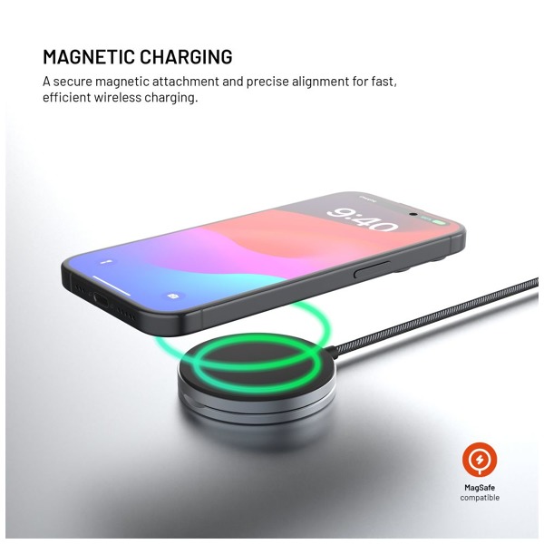 Bezdrôtová nabíjačka FIXED MagPad Pro s certifikovanou technológiou Qi2 a podporou MagSafe zabezpečuje rýchle a efektívne nabíjanie vášho telefónu. S výkonom až 15 W nabíja iPhony dvakrát rýchlejšie ako bežné bezdrôtové nabíjačky s limitom 7,5 W. Je plne kompatibilná so zariadeniami iPhone radu 12 a vyššie, ako aj s ďalšími zariadeniami podporujúcimi technológiu Qi2. Vďaka integrovaným magnetom sa automaticky pripevní k telefónu, presne sa vycentruje a nezasahuje do oblasti fotoaparátu. Jeho tenký a ľahký dizajn umožňuje pohodlné používanie telefónu aj počas nabíjania a praktický výklopný kovový stojan potom poskytuje ideálny uhol na videohovory, sledovanie videí alebo režim stolových hodín. Odolné hliníkové telo nabíjačky vo farbe Space Gray sa hodí k ostatným produktom Apple, zatiaľ čo nabíjacia plocha s mäkkým dotykovým povrchom chráni telefón pred poškriabaním. Nabíjačka sa dodáva s 1,2 m dlhým káblom s odolným nylonovým opletením a konektorom USB-C s hliníkovou koncovkou na zvýšenie životnosti kábla.