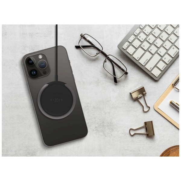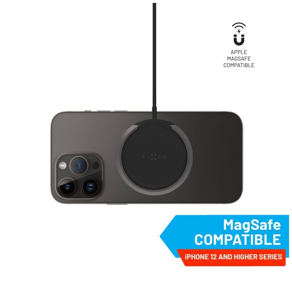 Bezdrôtová nabíjačka FIXED MagPad s podporou MagSafe a stojanom, 15 W, čierna