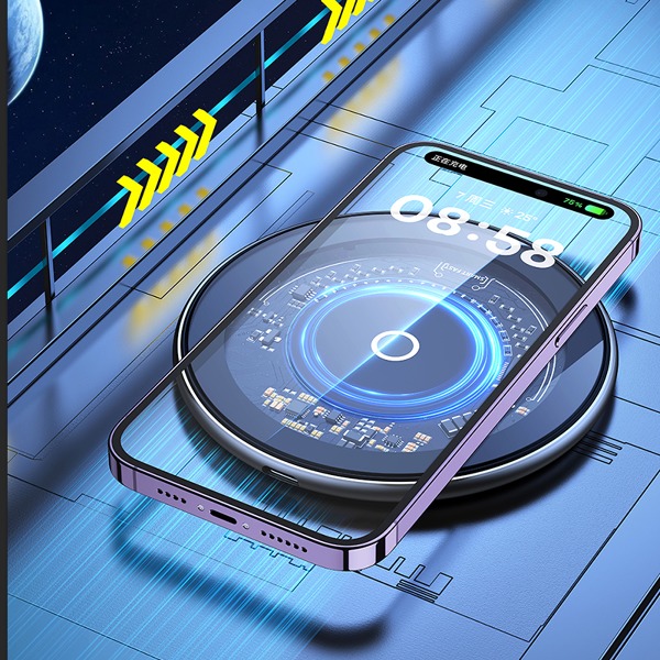 Jednou z najvýraznejších vlastností tejto nabíjačky je jej transparentný dizajn. Priehľadná vrchná časť z prémiového skla a plastová spodná časť vytvárajú elegantný a futuristický vzhľad. Táto kombinácia priehľadných materiálov dáva používateľom do rúk skvelý vizuálny zážitok počas nabíjania. Môžete sledovať, ako elektromagnetické pole preniká do zariadenia, a bez viditeľných káblov sa batéria opäť naplní energiou.