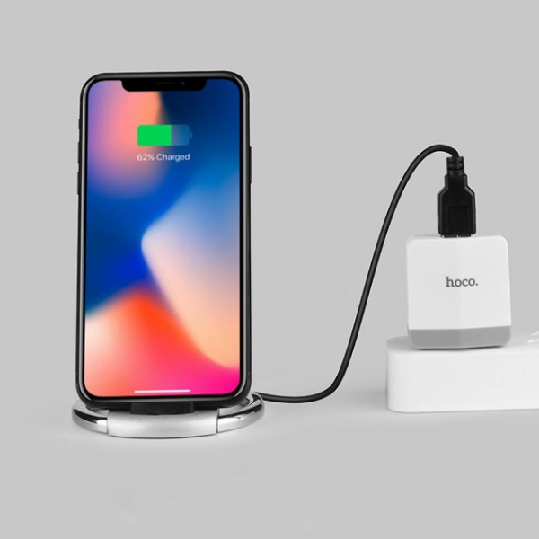 Stolná bezdrôtová nabíjačka Hoco 5W Unhindered čierno-strieborná