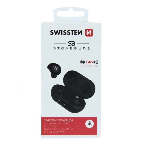 Bezdrôtové bluetooth slúchadlá Swissten StoneBuds - čierne
