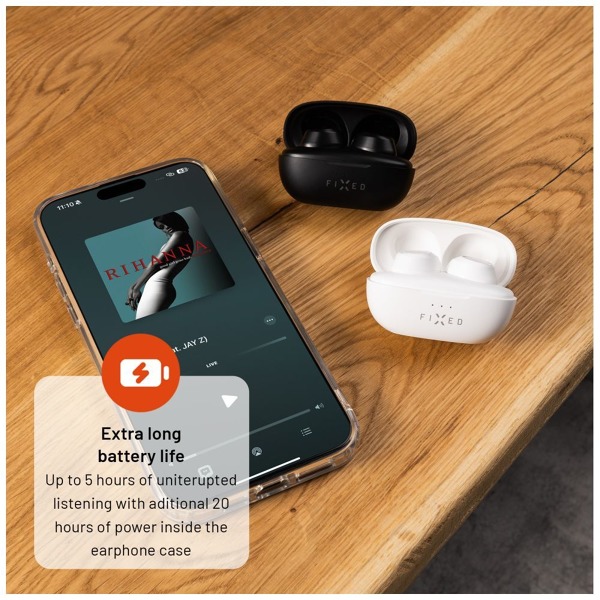 Bezdrôtové slúchadlá FIXED Buds ponúkajú skvelý zvuk obohatený o výraznejšie basy, ktoré ocenia aj nároční používatelia. Ergonomický tvar slúchadiel s vymeniteľnými silikónovými náušníkmi sa dokonale prispôsobí každému uchu a ponúka pohodlné nosenie počas celého dňa aj pri športových aktivitách. Pri prvom spárovaní sa slúchadlá pripájajú k telefónu okamžite po vybratí z nabíjacieho puzdra a technológia Master Slave umožňuje aj samostatné používanie ľavého a pravého slúchadla. Ovládanie slúchadiel je veľmi intuitívne - prehrávanie hudby, prijímanie hovorov alebo volanie asistentovi sa vykonáva jednoduchým dotykom slúchadiel. Kvalitný integrovaný mikrofón je ideálny na telefonovanie alebo online konferencie. Spolu s nabíjacím puzdrom vydržia slúchadlá až 25 hodín počúvania, takže bez problémov zvládnu celodenné používanie. Slúchadlá sa nabíjajú pomocou kábla USB-C, ktorý je súčasťou balenia. Minimalistické puzdro a slúchadlá si u vás nájdu svoje miesto, či už ste na ceste do práce, športujete alebo len relaxujete v parku.