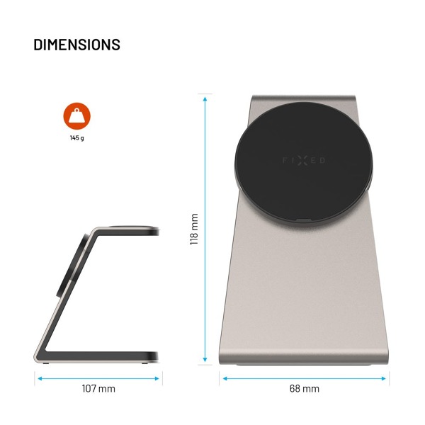 Bezdrôtový nabíjací stojan 3 v 1 FIXED MagPowerstation Alu 2 s podporou MagSafe, 15W+3,5W+2,5W, Qi2, titánový