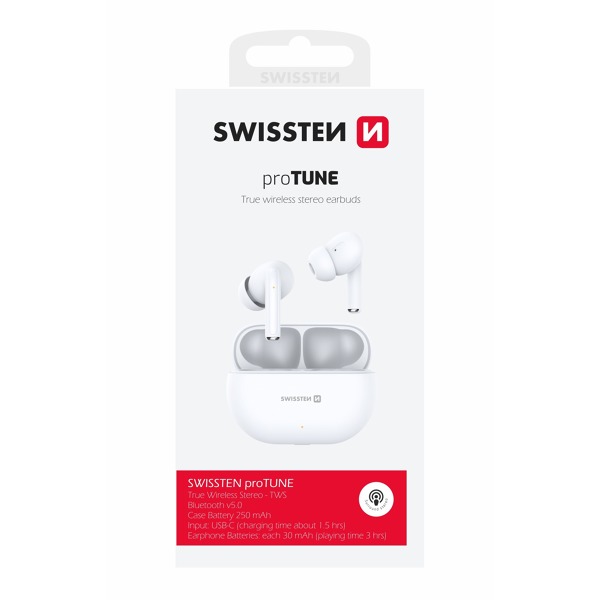 Krytoland pouzdra a kryty na mobil > TV, foto, audio-video > Slúchadlá > Slúchadlá Bluetooth > BLUETOOTH TWS SLÚCHADLÁ SWISSTEN PRO TUNE WHITE