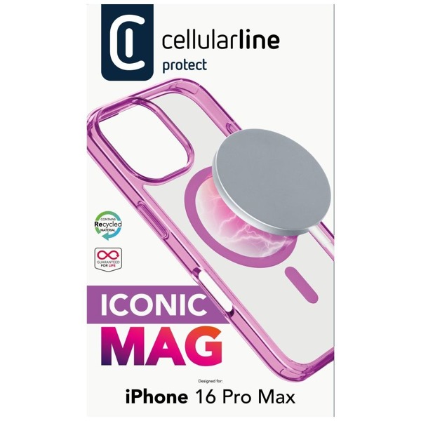 Cellularline Iconic Mag zadný kryt s podporou Magsafe pre Apple iPhone 16 Pro Max, číry / ružový