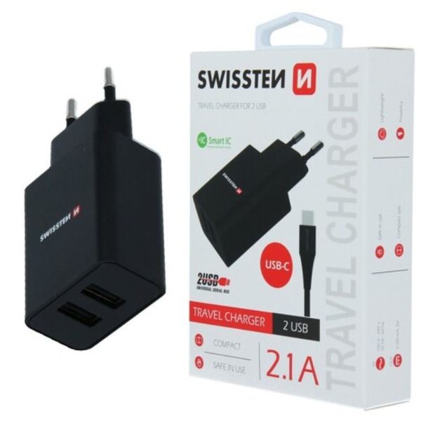 Vítajte na stránke krytoland.com, kde vám prinášame najnovšie technológie za skvelé ceny! Ak hľadáte praktickú a spoľahlivú cestovnú nabíjačku pre svoje zariadenia, máme pre vás skvelú voľbu - Swissten Travel Charger 2.1A USB-C v čiernej farbe.