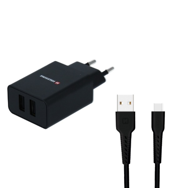 Cestovná nabíjačka Swissten 2,1 A USB-C - čierna
