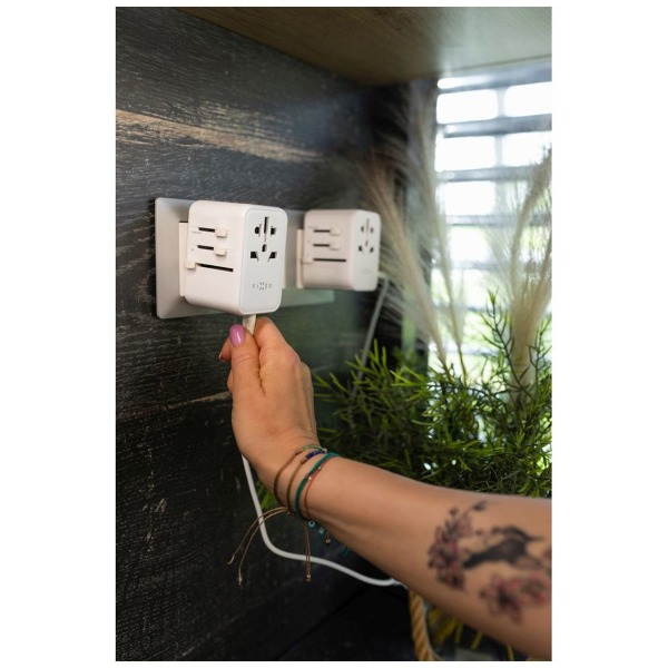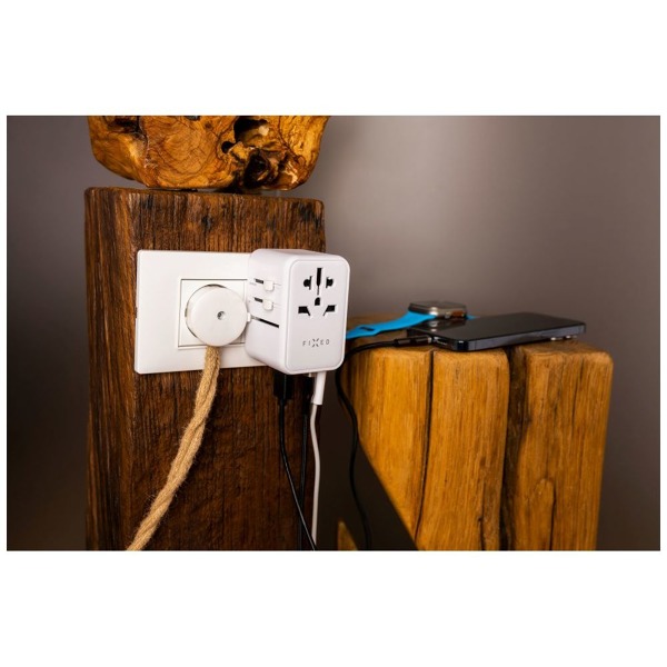 Cestovný adaptér FIXED je univerzálna nabíjačka, ktorú môžete používať v zásuvke kdekoľvek na svete. Je to ideálne príslušenstvo pre tých, ktorí trávia čas na cestách v zahraničí, ale aj šikovný pomocník na jednorazovú dovolenku. Pomocou výsuvných nabíjacích kolíkov sa nabíjačka prispôsobí krajinám EÚ, USA, britského štandardu (Austrália, Nový Zéland a ostatné krajiny Commonwealthu) a väčšine zásuviek v iných krajinách sveta. Ponúka tiež univerzálny vstup do samotnej nabíjačky, ktorý môžete využiť napríklad pri používaní zariadenia zakúpeného so zahraničnou nabíjacou zástrčkou v českých zásuvkách. Oproti klasickým cestovným adaptérom funguje adaptér FIXED aj ako samostatná nabíjačka s konektormi 3xUSB-C a 2xUSB-A s celkovým výkonom 65 W. Môžete tak nabíjať niekoľko zariadení súčasne. Na cestách oceníte aj vreckové rozmery adaptéra vďaka technológii GaN. Samozrejmosťou je bezpečnostná ochrana proti prehriatiu, prepätiu a skratu.