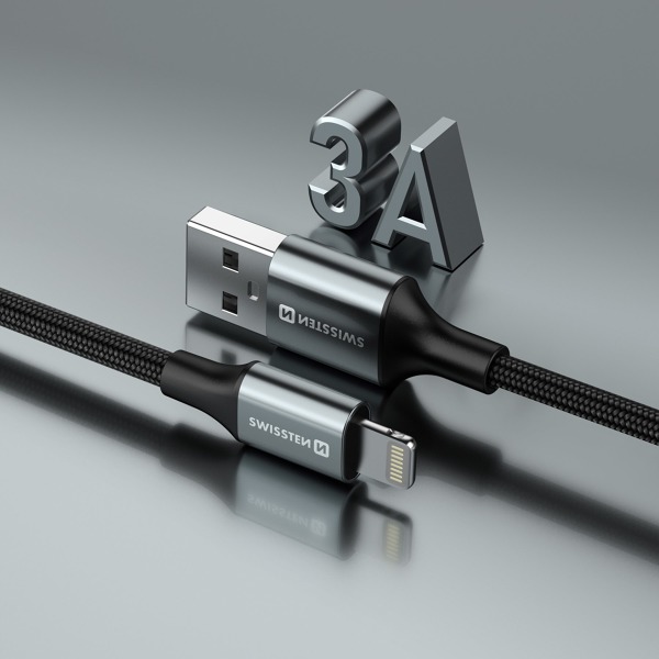 DÁTOVÝ KÁBEL SWISSTEN TEXTILE II USB / LIGHTNING 1,5 M ČIERNY