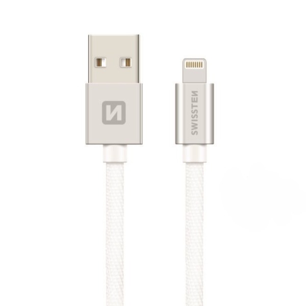 DÁTOVÝ KÁBEL SWISSTEN TEXTILE USB / LIGHTNING 0,2 M STRIEBORNÝ