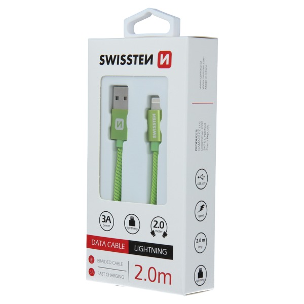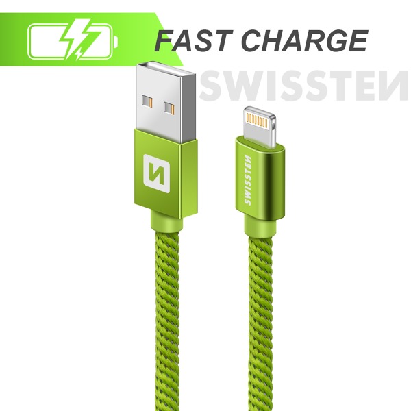 DÁTOVÝ KÁBEL SWISSTEN TEXTILE USB / LIGHTNING 2,0 M ZELENÝ