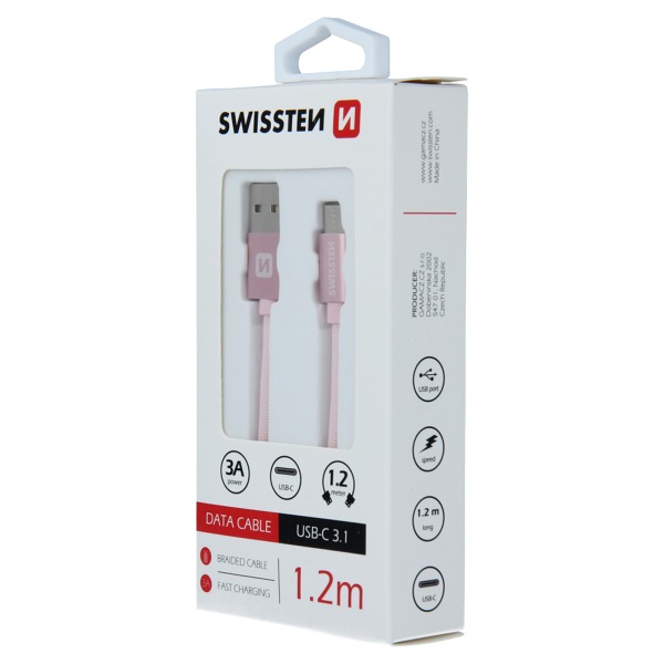 DÁTOVÝ KÁBEL SWISSTEN TEXTILE USB / USB-C 1,2 M RUŽOVÝ/ZLATÝ