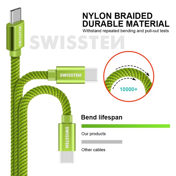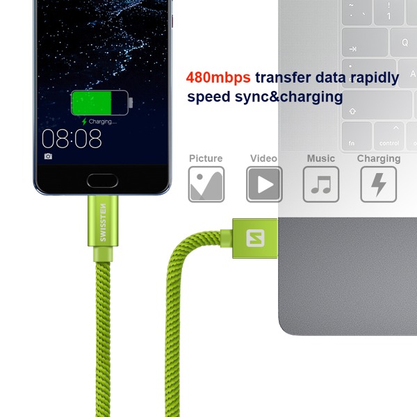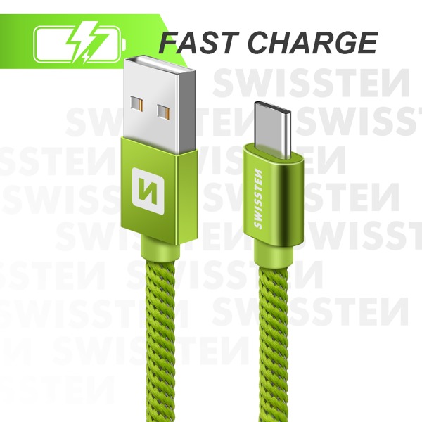 DÁTOVÝ KÁBEL SWISSTEN TEXTILE USB / USB-C 1,2 M ZELENÝ