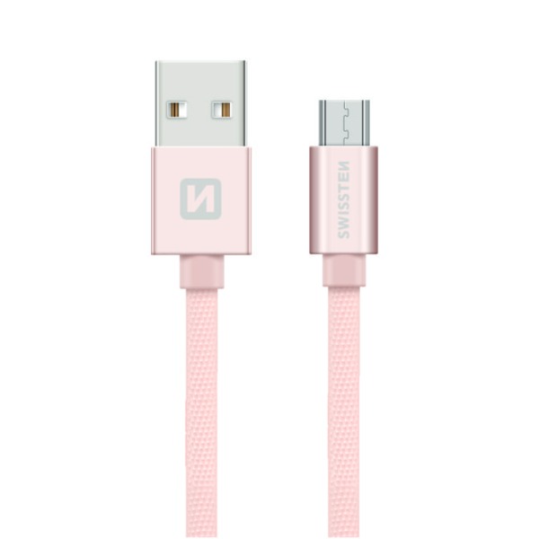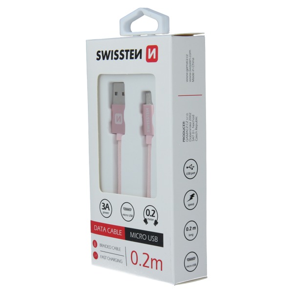 DÁTOVÝ KÁBEL SWISSTEN TEXTILNÝ USB / MICRO USB 0,2 M RUŽOVÝ/ZLATÝ