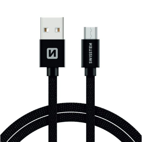 DÁTOVÝ KÁBEL SWISSTEN TEXTILNÝ USB / MICRO USB 2,0 M ČIERNY