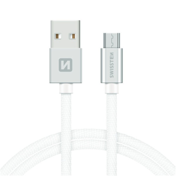 DÁTOVÝ KÁBEL SWISSTEN TEXTILNÝ USB / MICRO USB 2,0 M STRIEBORNÝ