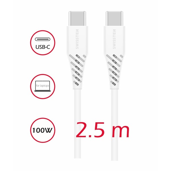 DÁTOVÝ KÁBEL SWISSTEN TPE USB-C/USB-C POWER DELIVERY 5A (100W) 2,5 M BIELY
