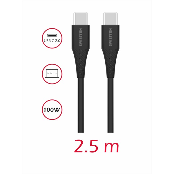 DÁTOVÝ KÁBEL SWISSTEN TPE USB-C/USB-C POWER DELIVERY 5A (100W) 2,5 M ČIERNY
