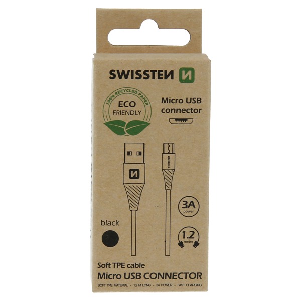 DÁTOVÝ KÁBEL SWISSTEN USB/MICRO USB ČIERNY 1,2 M (EKOLOGICKÉ BALENIE)