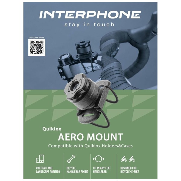 Univerzálny držiak Interphone Quiklox na riadidlá, kompatibilný so všetkými držiakmi telefónov Quiklox. Orientácia telefónu na šírku alebo na výšku. Určené pre bicykle a elektrobicykle. Systém proti uvoľneniu, ktorý zabraňuje náhodnému odpojeniu