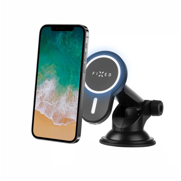 Držiak s bezdrôtovým nabíjaním FIXED MagClick XL s montážnou podporou MagSafe, na sklo alebo palubnú dosku, 15 W, čierny