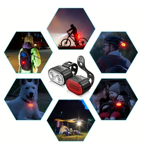 Duo LED predné a zadné svetlo na horský bicykel, dobíjateľné cez USB