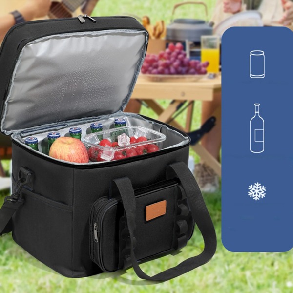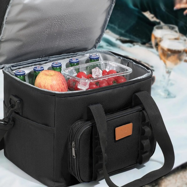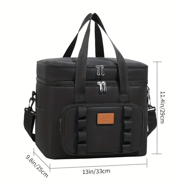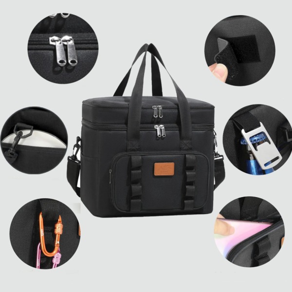 Vyrobený z kvalitného a odolného materiálu, ktorý odolá bežnému opotrebovaniu a nepriaznivému počasiu. Vnútro je pokryté špeciálnou izolačnou vrstvou, ktorá zabraňuje úniku chladu a zároveň minimalizuje kondenzáciu. Praktická dvojvrstvová konštrukcia umožňuje oddeliť potraviny, nápoje alebo iné potreby, takže všetko zostane dokonale usporiadané a bezpečne uložené.