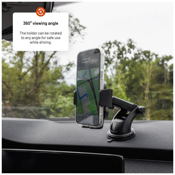 - prísavná základňa na pripevnenie na čelné sklo alebo palubnú dosku