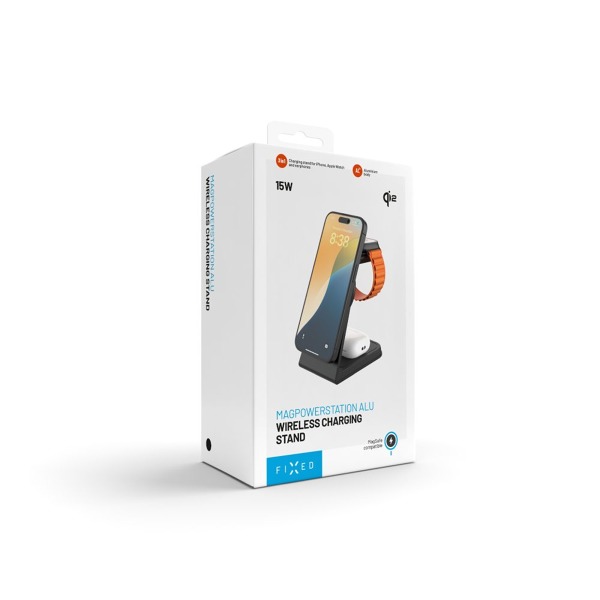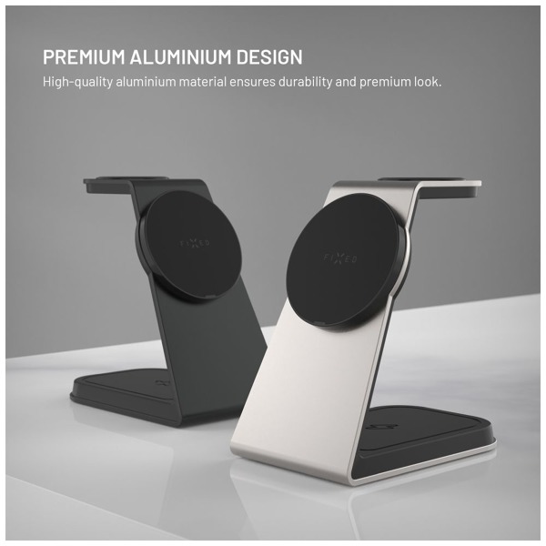 FIXED MagPowerstation Alu 2 s podporou MagSafe, 15W+3,5W+2,5W, Qi2, čierna