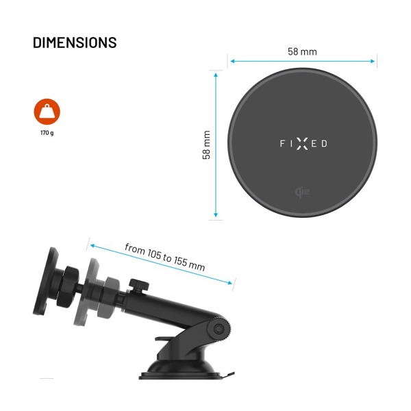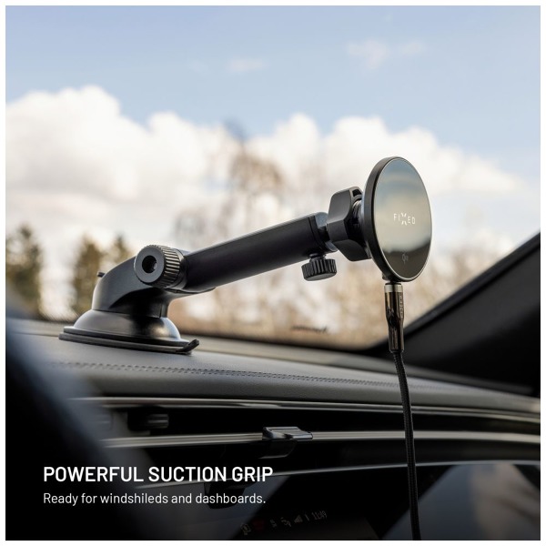FIXED MagRound 2 XL bezdrôtový nabíjací držiak na sklo alebo palubnú dosku, podpora MagSafe, 15W, Qi2, čierny