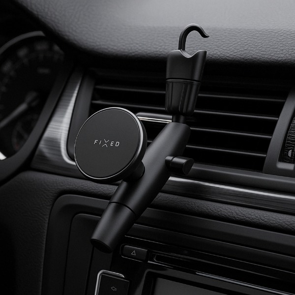 Magnetický držiak FIXED Icon Air Vent s kĺbom, čierny, rozbalený
