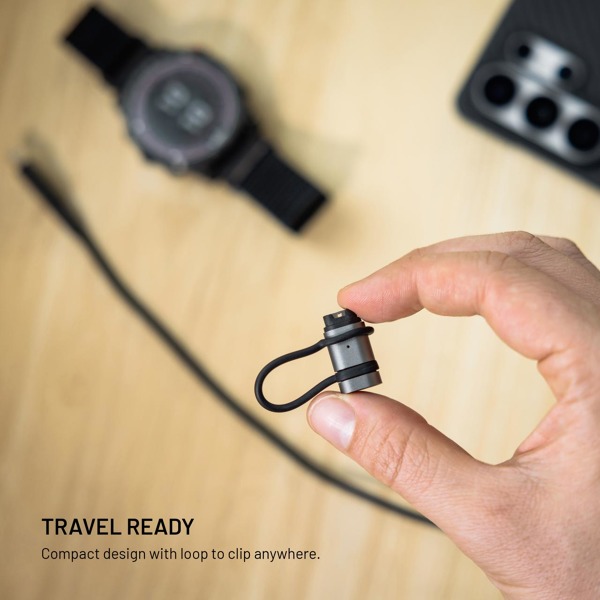 Fixed Link pre Garmin je praktické riešenie pre všetkých používateľov zariadení Garmin, ktorí chcú zjednodušiť nabíjanie a prenos dát. Adaptér konvertuje konektor USB-C na rozhranie Garmin. Vďaka integrovanému pútku možno adaptér ľahko prevliecť cez kábel a mať ho vždy po ruke - ideálne na cesty a každodenné používanie. Adaptér podporuje nabíjanie aj prenos dát, takže ho môžete používať nielen na nabíjanie hodiniek, ale aj na synchronizáciu máp a dát prostredníctvom aplikácií, ako je Garmin Express alebo BaseCamp. Podpora OTG a kompatibilita s nabíjačkami Power Delivery zaisťuje širokú použiteľnosť naprieč zariadeniami. Odolné hliníkové telo vo farbe Space Gray zaručuje dlhú životnosť a spoľahlivé používanie.