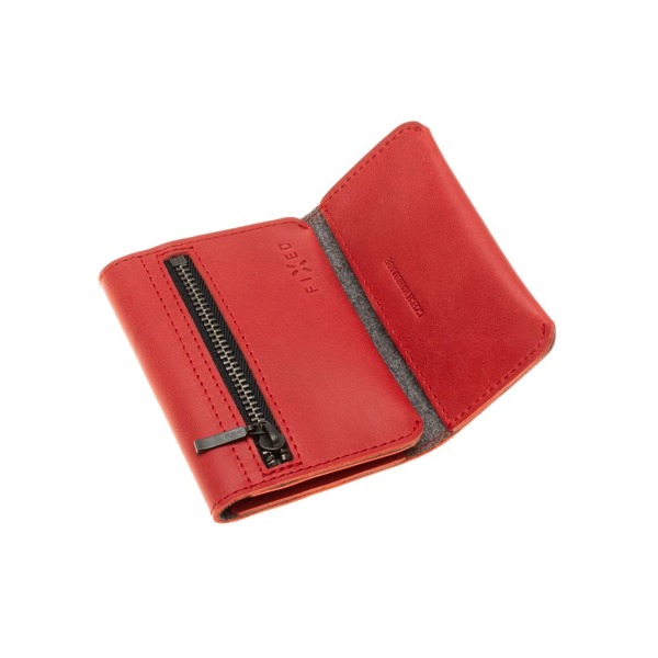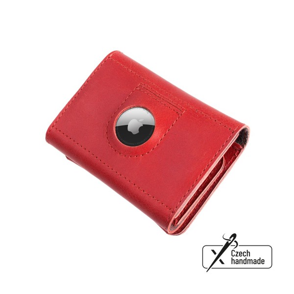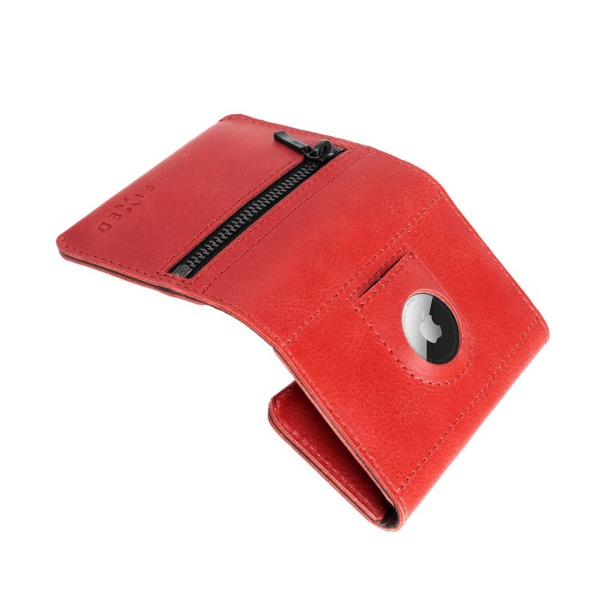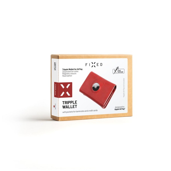 FIXED Trojitá peňaženka pre AirTag z pravej hovädzej kože, červená