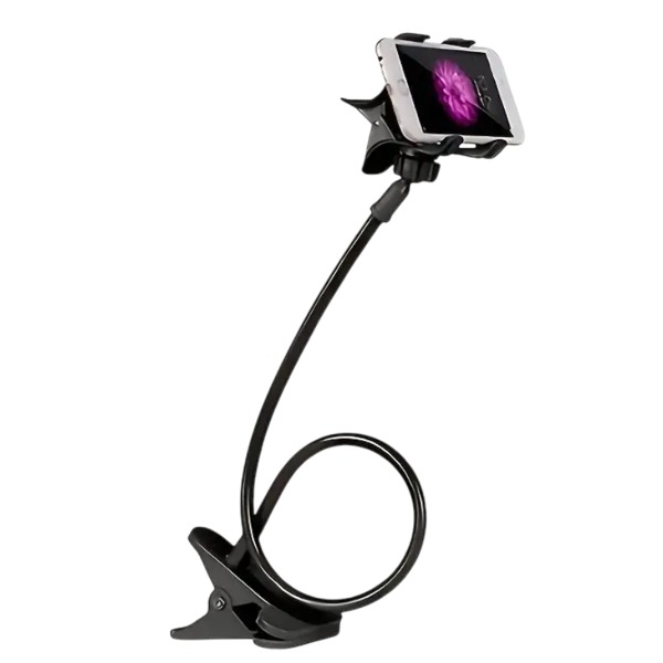 Univerzálny a elegantný čierny držiak na mobilný telefón s dlhým flexibilným husím krkom je ideálnym riešením na pohodlné sledovanie obsahu bez nutnosti držať telefón v ruke. Vďaka pevnému klipu ho ľahko pripevníte na posteľ, stôl, poličku alebo akýkoľvek iný povrch.