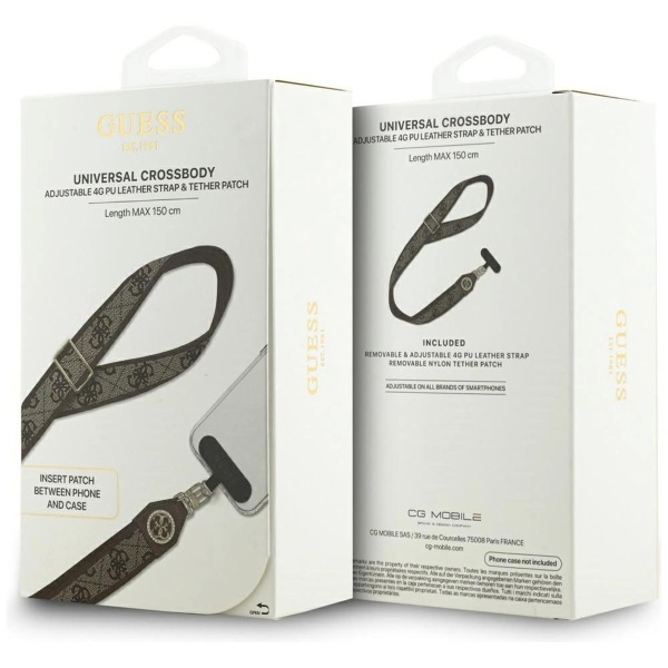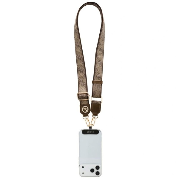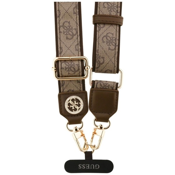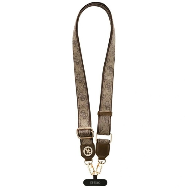 Popruh je vyrobený z odolného, pevne tkaného materiálu, ktorý zaručuje dlhú životnosť a odolnosť pri každodennom používaní. Kovové prvky dodávajú eleganciu a chránia pred opotrebovaním, zatiaľ čo výrazné logo Guess 4G dodáva celému doplnku luxusný charakter. Každý detail je starostlivo prepracovaný, vďaka čomu je doplnok podmanivý dizajnom aj funkčnosťou.