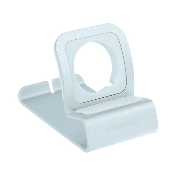 Krytoland pouzdra a kryty na mobil >  Inteligentné hodinky a príslušenstvo >  Nabíjačky pre inteligentné hodinky > HLINÍKOVÝ STOJAN SWISSTEN PRE HODINKY APPLE WATCH STRIEBORNÝ