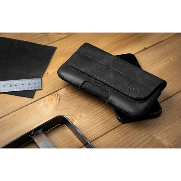 Horizontálne kožené puzdro FIXED Posh so zatváraním, veľkosť 4XL+, čierne